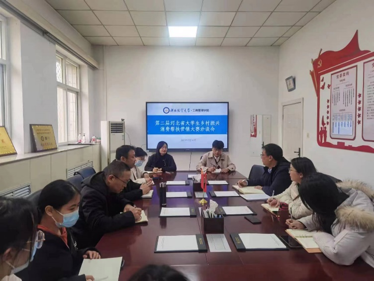 为了解营销在新时代的模式,抓住乡村在新时代的机遇,给学生们提供一个展现自我、锻炼自我的平台,3月16日,Beat365中文官方网站于学院会议室举办河北省大学生乡村振兴消费帮扶营销大赛赛事座谈会。就业服务中心杨玉洁副主任,Beat365中文官方网站党委副书记范伟,团委书记贾晶晶,营销系主任李建洲,河北省乡村振兴消费帮扶大学生创业营销大赛组织委员会陈国亮、赵建、李星然到场,参赛队伍学生代表参加此次活动。