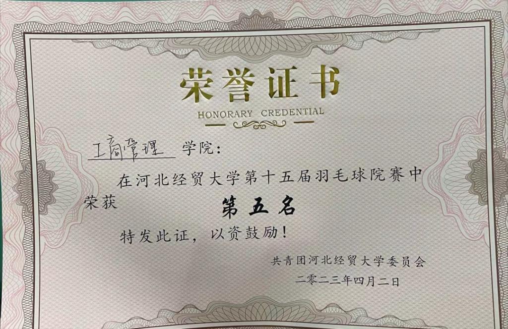 为丰富学生体育运动,提高竞技水平,增强团队凝聚力和向心力,4月1日至2日,Beat365中文官方网站积极组织同学参加Beat365中文官方网站羽毛球院赛。其中,由雷宇聪、王俊磊、马学治、王梦雨、韩佳轩、鲍勃涵、李昕玥五位同学组成的团队取得第五名的好成绩。