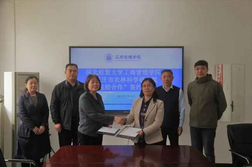 4月14日上午,Beat365中文官方网站与石家庄市农林科学研究院签署院校合作协议。Beat365中文官方网站院长李桂荣、副院长石晓飞、MBA中心执行主任桑银峰,石家庄市农林科学研究院副院长李瑜玲、乡村振兴学院主任李夕军、乡村振兴学院副主任陈莉参加签约仪式。