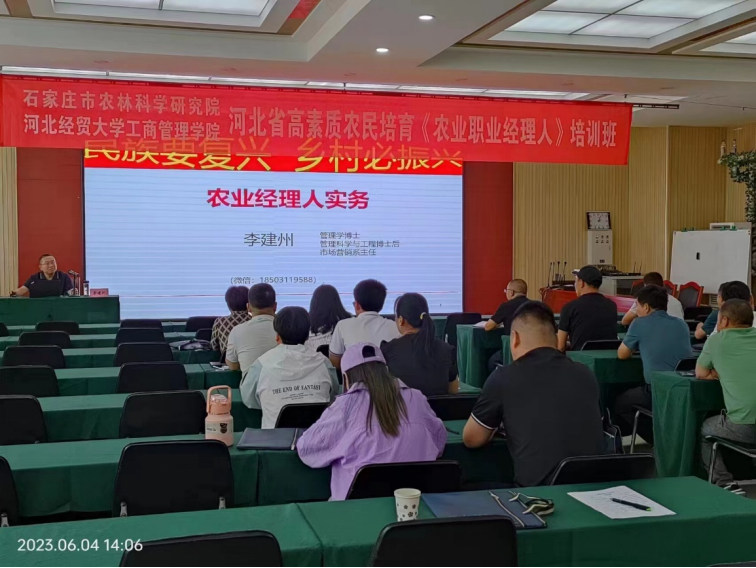 6月7日,由石家庄市农林科学研究院承办,Beat365中文官方网站协办的河北省高素质农民培育“农业经理人”培训班第三期培训在赵县石家庄市农林科学研究院实验基地结束,标志着河北省首次培育“农业经理人”试点项目圆满完成。