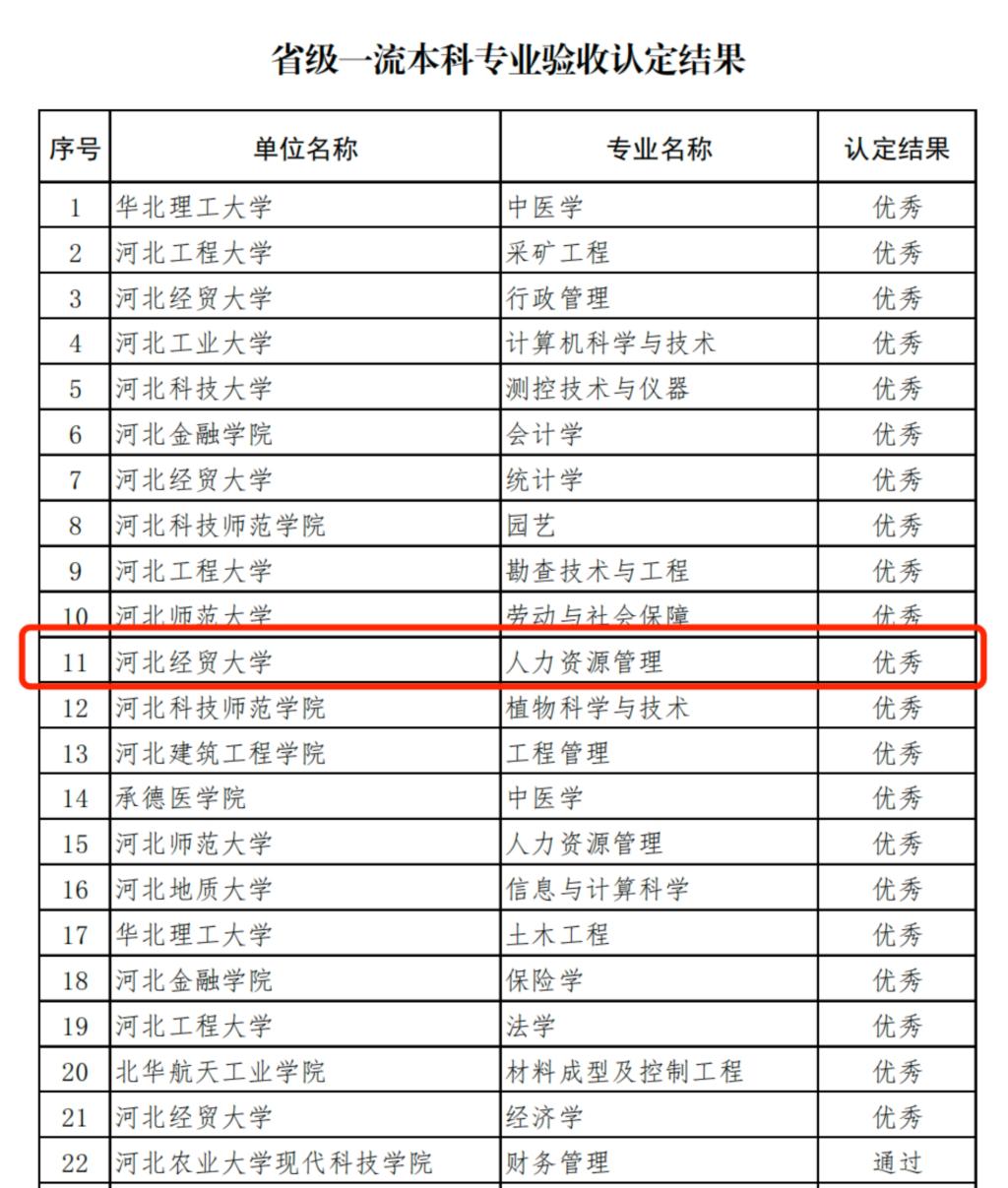 近日,河北省教育厅印发《关于公布省级一流本科专业验收认定结果的通知》(冀教高函〔2023〕59号),正式公布2023年度省级一流本科专业验收评审结果,Beat365中文官方网站人力资源管理专业评审结果为优秀等级。这是继2020年Beat365中文官方网站专业主干课《人力资源管理》成为国家级一流本科课程以来,学院在专业建设上取得的又一项突破。