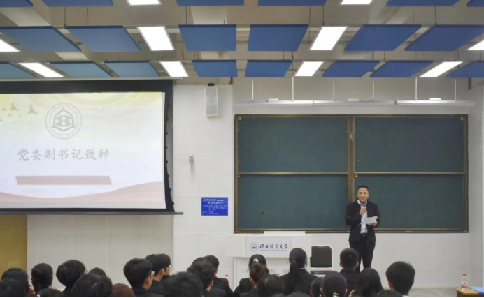 首先,党委副书记贾国强对学生会新成员的加入表示热烈的欢迎和诚挚的祝贺。他指出,学生干部要明确“学生是身份,干部是责任”的原则,务必做到学习工作两手抓。随后,他对今后的团学工作和学生骨干作风建设提出了两点期望:一是要在思想上永远跟党走,紧跟时代步伐,认真贯彻党的二十大精神和新时代党对青年工作的要求。二是要杜绝不良风气,踏实认真地做好服务者。学生干部要秉持“从学生中来,到学生中去,全心全意为学生服务”的宗旨,杜绝官僚主义、形式主义、自我主义的不良作风,牢记初心使命,为学生提供实实在在的帮助。