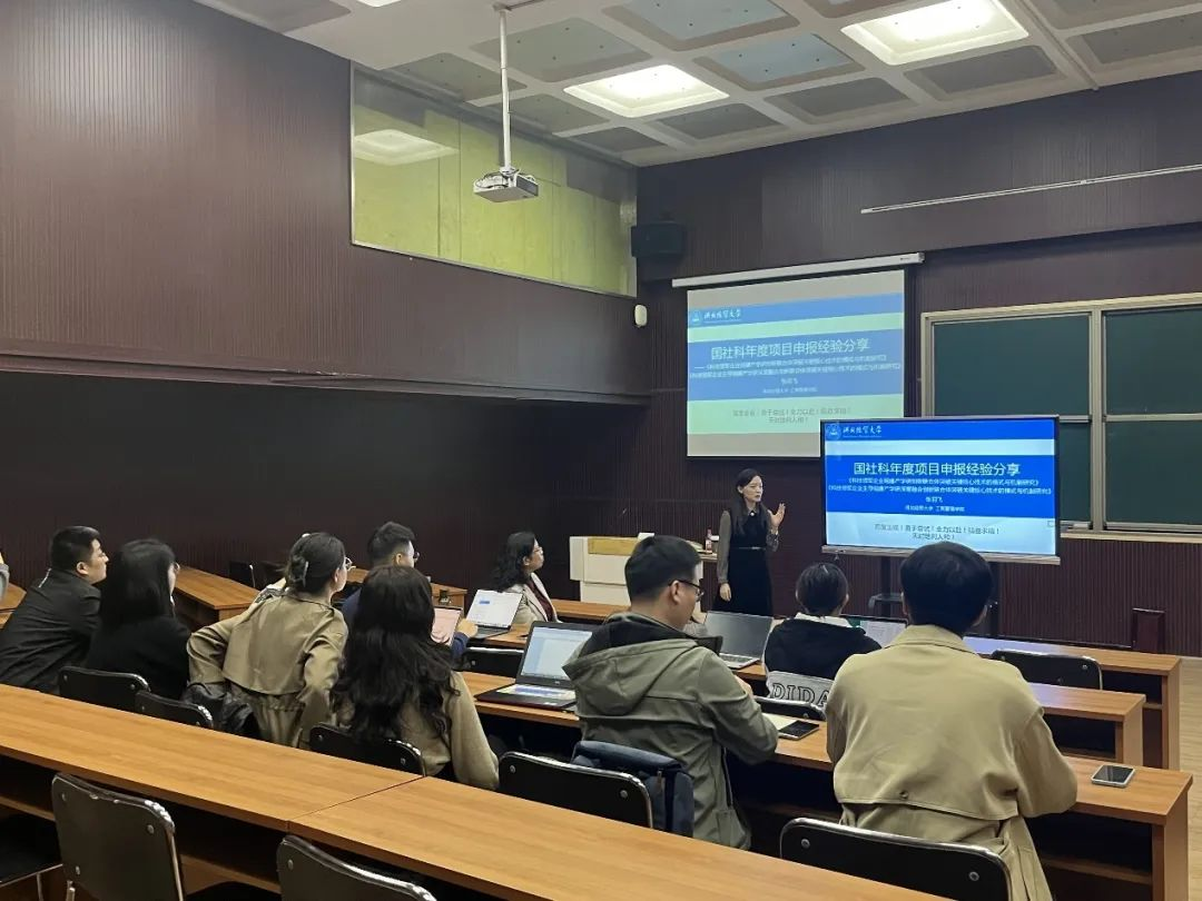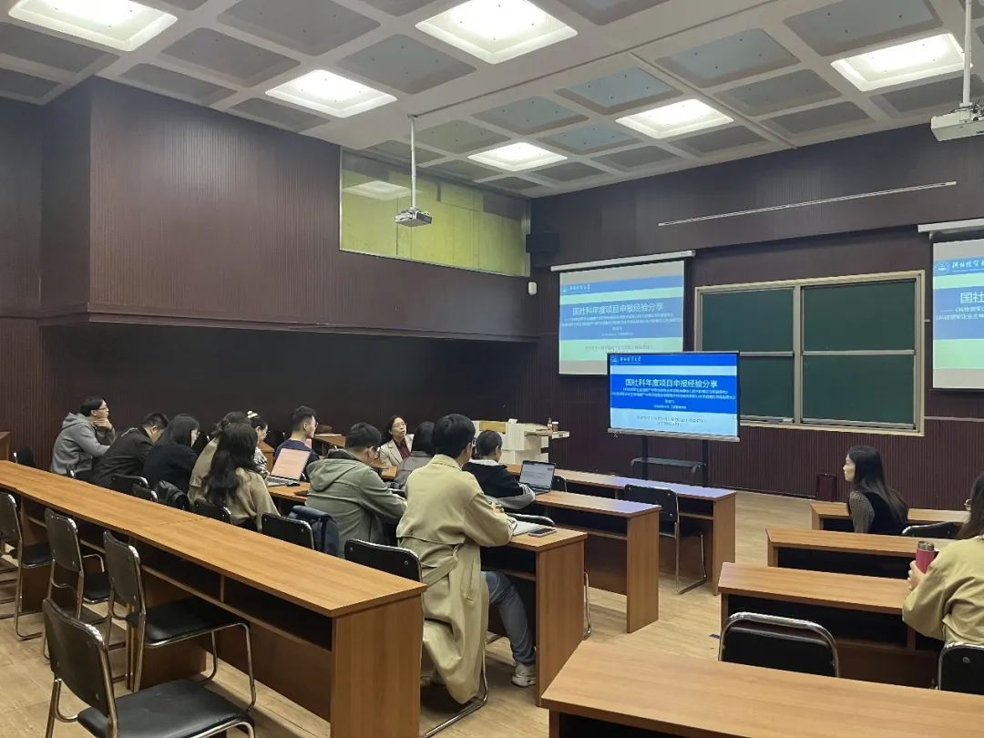 会议邀请了学院2023年国家社科基金项目获得者张羽飞老师做分享报告。张羽飞老师在分享中结合个人申报经验,首先对今年公布的题目进行了深入分析,为在座的各位老师提供了新的研究思路和方向。她建议密切关注相关研究立项趋势的变化,以更好地把握研究方向,并着重强调了一个好的选题是项目申报成功的第一步。详细介绍了选题的基本原则和标准,强调要深入分析个人研究优势,仔细研读选题指南,深入挖掘问题导向的研究内容。最后,特别强调了项目申报中的创新性是一个关键难点。指出项目的创新点应该是客观、切实可行的,并要强调其应用价值。此外,还要确保研究内容简洁易懂,在研究过程中积极与领域内外专家进行交流,以确保研究成果能够被广泛理解和接受。