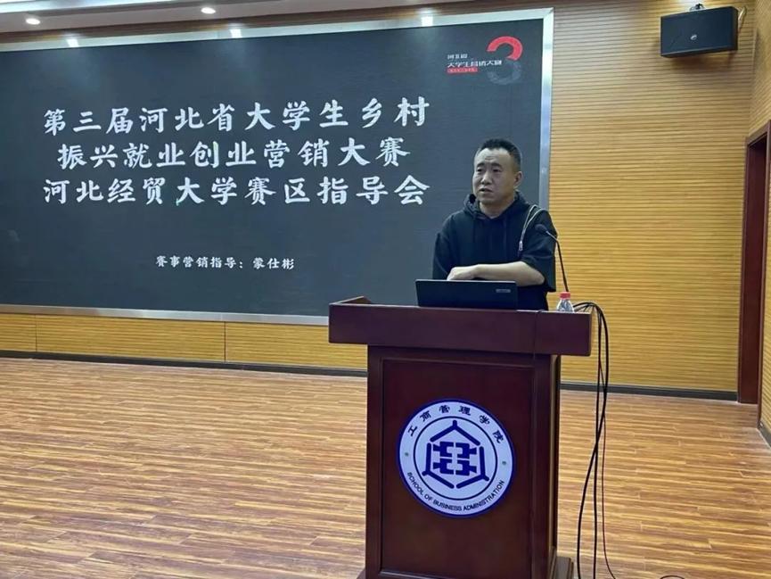 为提高学生参赛热情,详细了解大赛规则,10月20日晚,第三届河北省大学生乡村振兴就业创业营销大赛Beat365中文官方网站赛区指导会在Beat365中文官方网站报告厅顺利举办。本次会议由Beat365中文官方网站校赛联系人贾晶晶主持,营销大赛赛事营销指导蒙仕彬老师主讲,全体参赛选手参加。