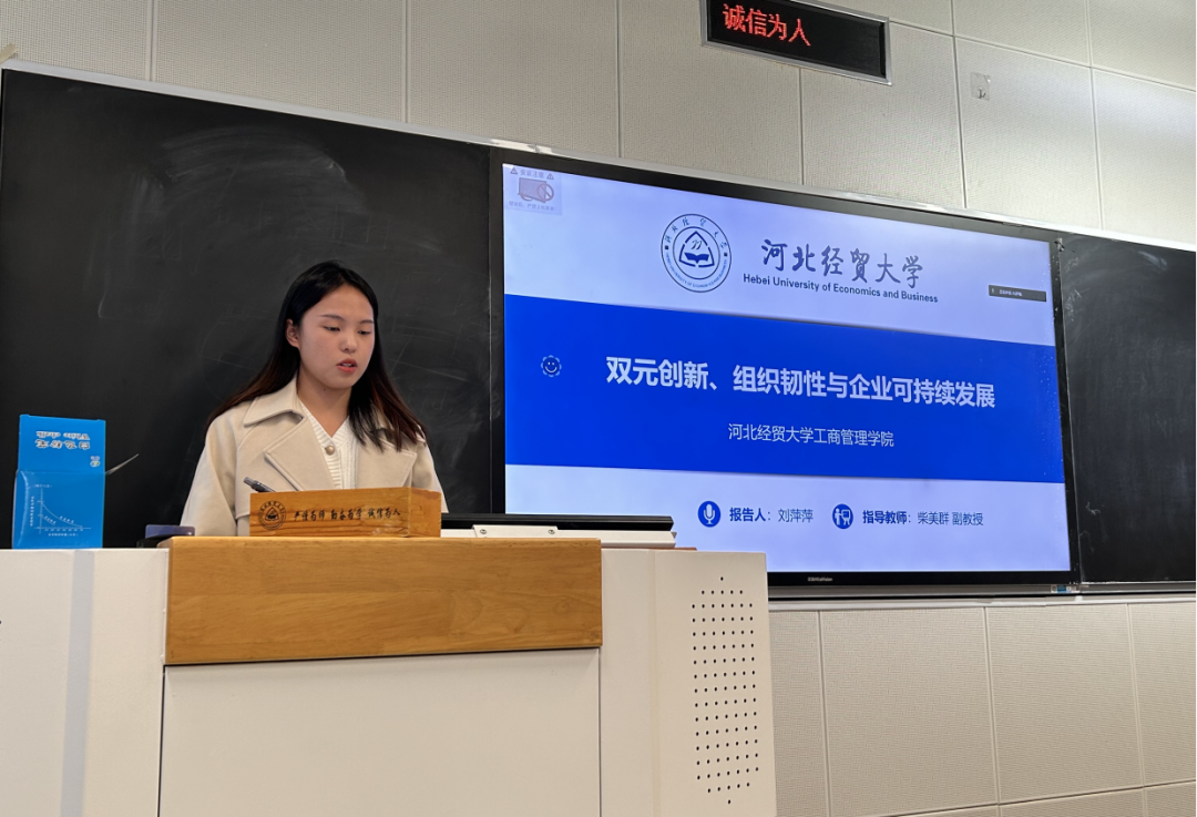 汇报人刘萍萍以“双元创新、组织韧性与企业可持续发展”为题,以上市公司为研究样本,探讨双元创新、组织韧性与企业可持续发展三者之间关系,构建并检验了双元创新—组织韧性—企业可持续发展的理论模型。该研究有助于帮助企业在VUCA环境下更高效更科学的开展探索式创新和利用式创新活动,维持企业核心竞争力和未来长期竞争优势,提升预测风险、应对危机的能力,从而实现企业的可持续发展。