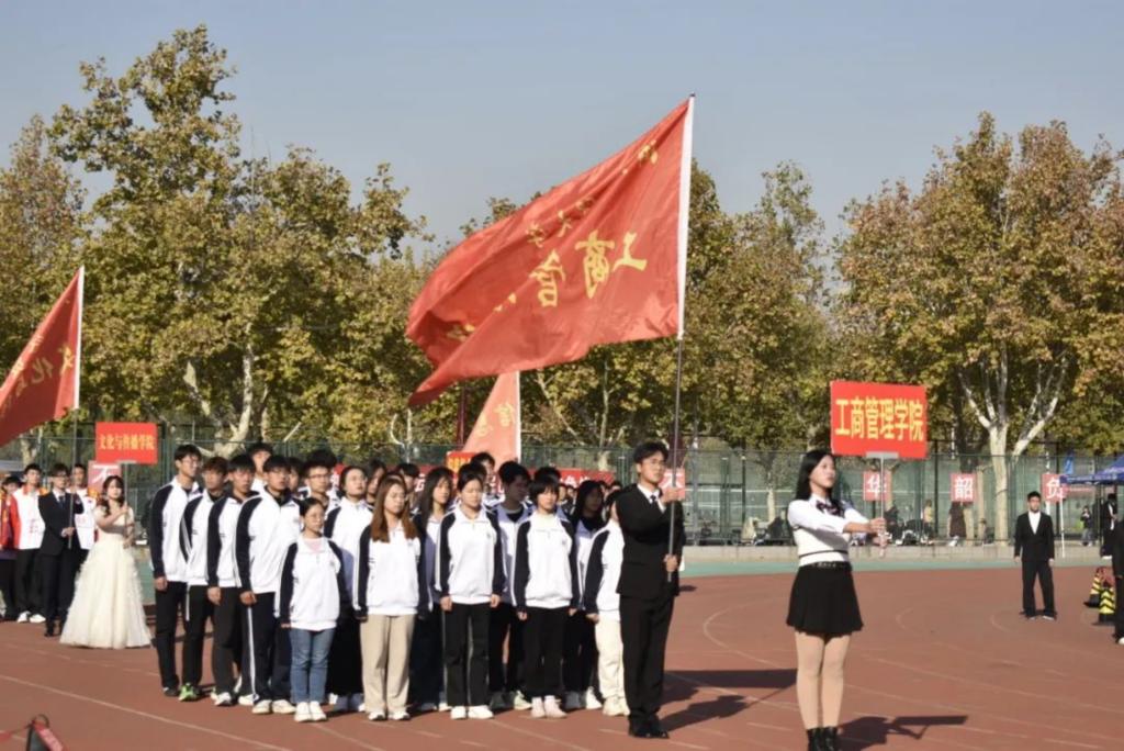 伴随着激昂的乐曲,Beat365官网队员身着统一的院服,昂首挺胸,面露微笑,迈着铿锵有力的步伐,怀着必胜的决心,整齐有序地进入了赛场。工商学子整齐划一的步伐和协调的动作展示出了Beat365官网的纪律性和团队精神。