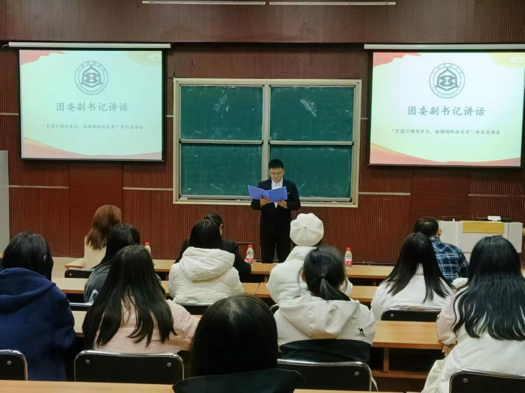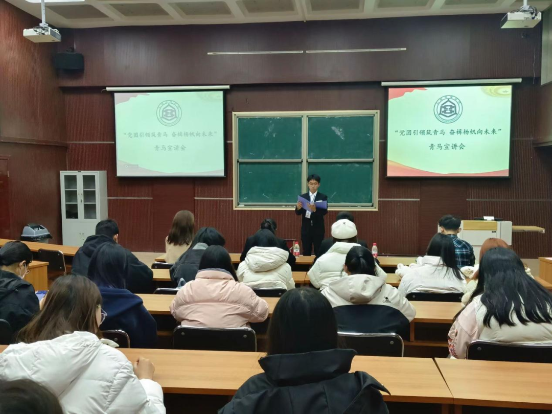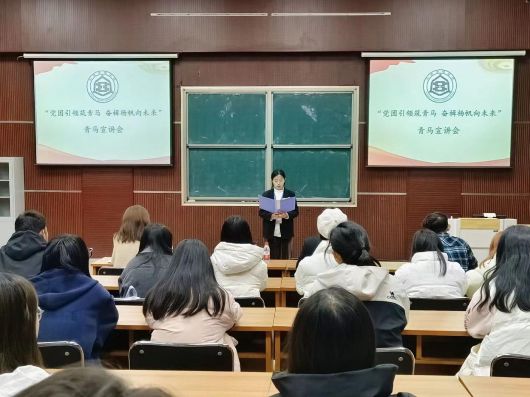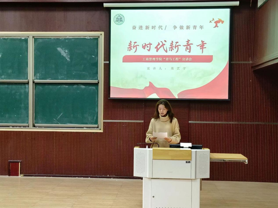 为深入学习贯彻党的二十大报告中关于青年工作的重要思想,引导广大工商学子坚定共产主义理想和中国特色社会主义信念,11月23日下午,Beat365中文官方网站开展“党团引领筑青马,奋楫扬帆向未来”主题宣讲活动。本次活动由刘树状、高艺宁、秦培召、李祺祺四位优秀青马学员代表发言,学院团委副书记王子穆到场,2023级部分团员参加。