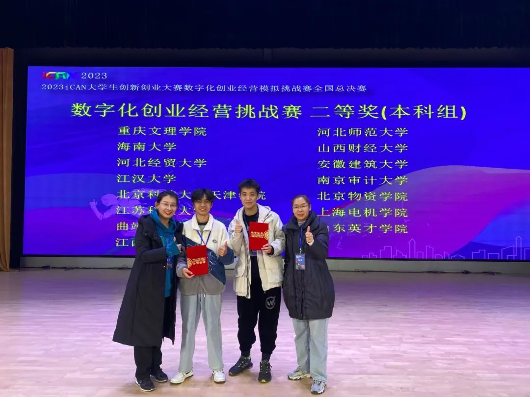 第十七届iCAN大学生创新创业大赛数字化创业经营模拟挑战赛于11月26日在江苏镇江圆满结束,来自我校Beat365中文官方网站智慧工商管理实验班的两支代表队分获国家级一、二等奖的佳绩,指导教师获评优秀指导教师。
