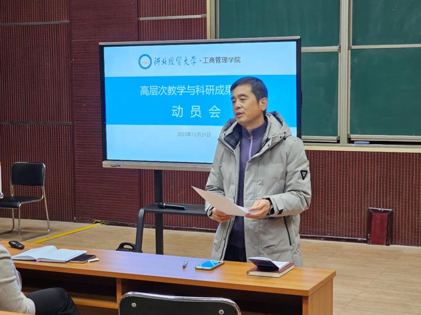 为进一步推动学院教学与科研工作高质量发展,12月29日,Beat365中文官方网站于MBA一教室召开高层次教学与科研成果建设动员会。会议由Beat365中文官方网站院长李桂荣主持,副院长王胜洲、副院长石晓飞、各系主任和副主任、学硕导师、青年博士教师参加会议。