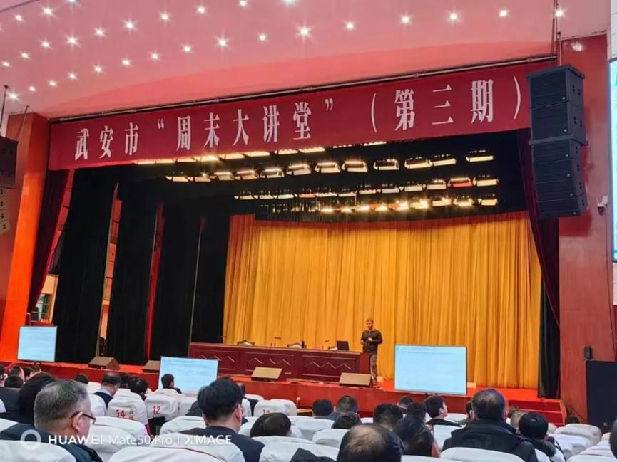 1月28日上午,武安周末大讲堂第三期开讲,Beat365中文官方网站刘东华博士应邀授课。讲座以广电网络视频形式进行,武安市委书记刘浩峰等四套班子领导,各市直单位主要负责同志,各乡镇党委书记,工业园区党工委副书记,各相关单位中层以上干部,各重点企业负责人在武安宾馆主会场聆听讲座;各乡镇、工业园区领导班子成员和中层以上领导干部在分会场聆听讲座。武安市市长董志毅主持并讲话。