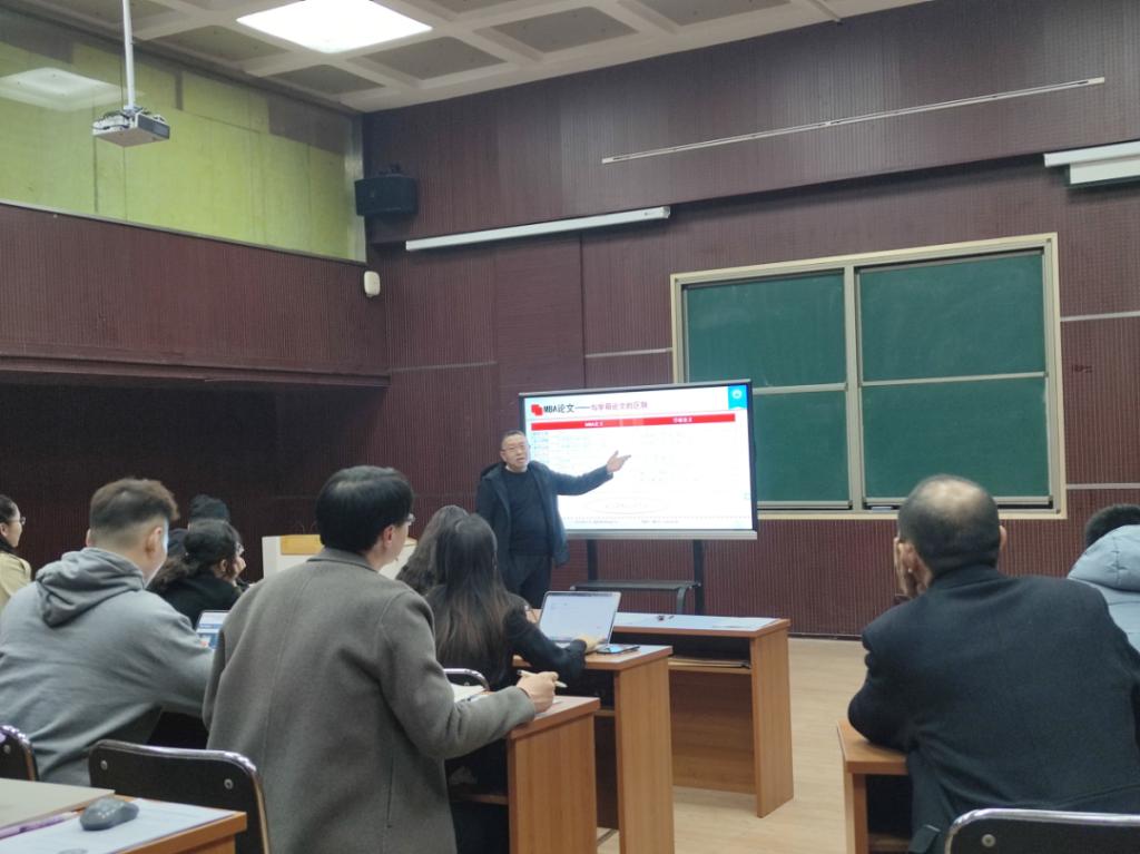 李建州老师以《问卷与量表的区别》为题,就专业学位和学术学位论文在问卷设计上的异同、量表的规范使用以及论文指导的标准进行了讲解,明确区分了学硕和专硕两种论文的结构差异,以区分两类研究生培养的特点。
