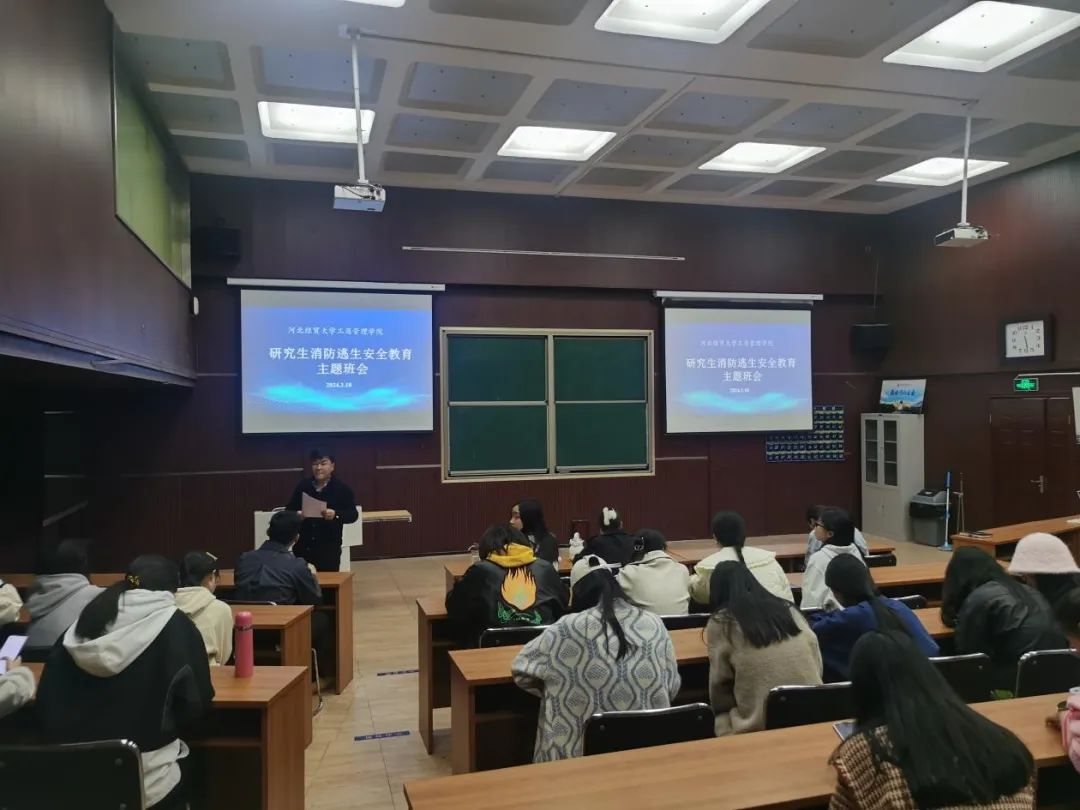 为认真贯彻落实省、校消防安全工作会议精神,进一步做好校园消防安全工作,增强研究生消防安全意识,提升应对火灾等紧急情况的自救互救能力,3月18日下午Beat365中文官方网站开展了研究生春季消防安全教育暨应急疏散演练活动。本次活动由Beat365中文官方网站研究生辅导员李建林主持,全体学硕研究生参加。