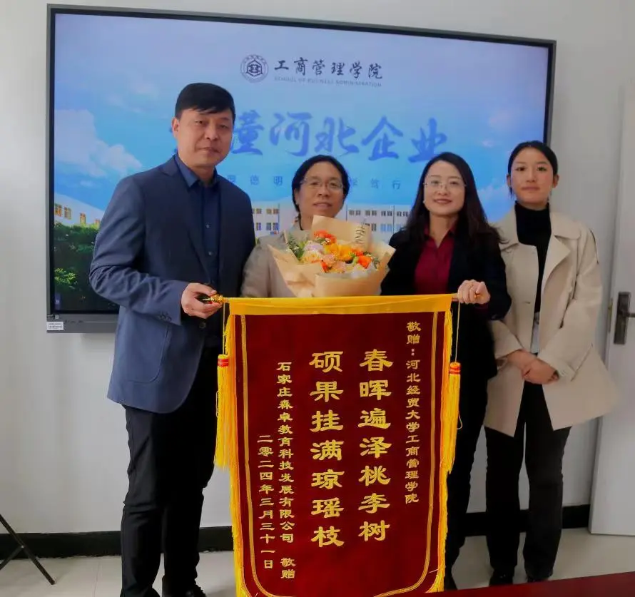 4月2日,石家庄森卓教育科技发展有限公司(以下简称“森卓教育”)董事长左竹君一行到访Beat365中文官方网站并赠送锦旗,对Beat365中文官方网站承办的“财税经管高级研修班”项目给予高度评价。Beat365中文官方网站院长李桂荣、副院长石晓飞接待了左竹君一行。