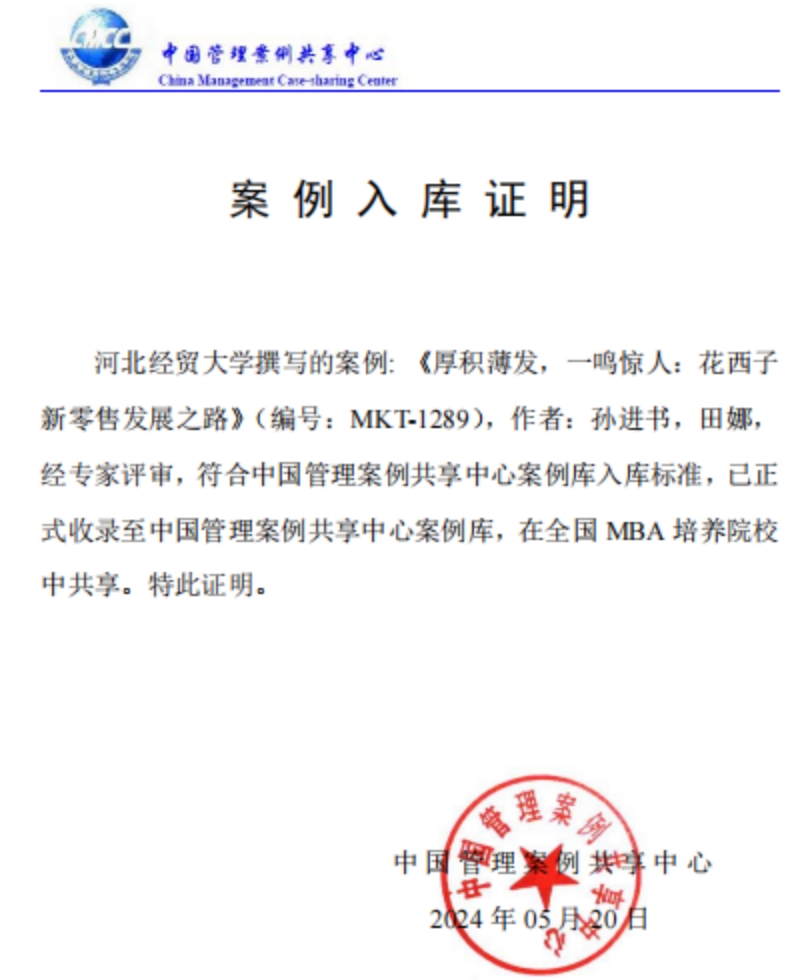 近日,Beat365中文官方网站讲师孙进书博士、2020级智慧工商管理2班田娜共同撰写的教学案例《厚积薄发,一鸣惊人:花西子新零售发展之路》入选中国管理案例共享中心案例库(编号:MKT-1289)。