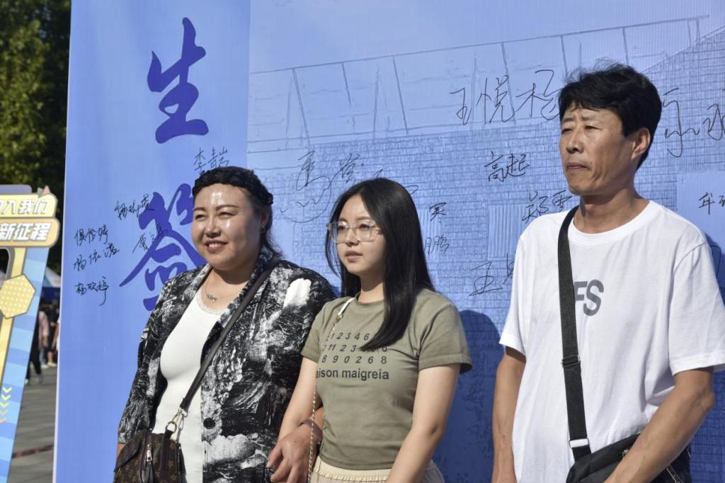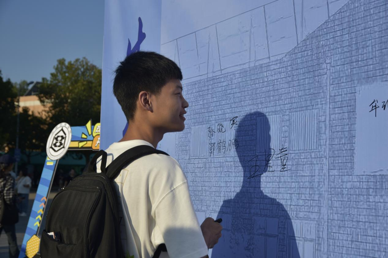 图书馆前是志愿者们忙碌的身影,是签名墙上留下的串串笔迹,是新同学们脸上洋溢的笑脸与期待。大家纷纷在签名墙边合影留念,将这难忘的一刻定格。