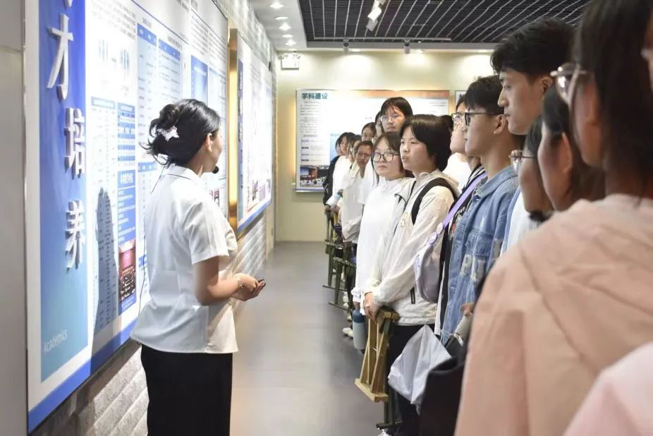 首先,在讲解员的带领下,他们仿佛穿越时光隧道,从创立之初的筚路蓝缕到如今的蓬勃发展,每一幅图片、每一件展品都承载着厚重的历史记忆。新生们驻足凝视,认真聆听,不时发出惊叹与感慨,对学院深厚的文化底蕴和卓越的教育成果有了更加直观和深刻的理解。