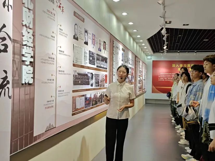 紧接着,新生们的脚步又踏入了发票博物馆这一独特的文化空间。作为经济活动的见证者,发票背后蕴含着丰富的社会经济变迁信息。博物馆内,发票展品琳琅满目,从古老的纸质发票到现代的电子发票,每一份都记录着时代的变迁和技术的进步。值得一提的是,我校发票博物馆目前是河北省高等学校人文社会科学重点研究基地,馆内设有互动设备和电子数据库,便于大家身临其境地感受和触摸历史真实的过去,更好地了解中国发票的发展轨迹。在讲解员的生动讲解下,新生们不仅了解了发票的历史演变,还深刻体会到了税收制度对国家经济发展的重要性。这种跨学科的学习体验,不仅拓宽了他们的视野,也激发了他们对未来专业学习的浓厚兴趣。