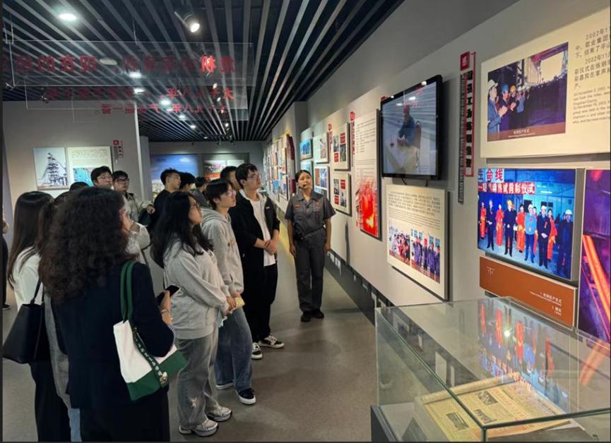 在敬业集团工作人员的精心安排下,师生参观了企业的创业史展厅和创新发展展厅,全面了解了企业从初创到辉煌的各个关键节点,深刻体会了创新与责任并重的企业精神。随后,师生一行参观了第一炼铁事业部B号高炉,直观感受了炼铁工艺的原理和奥秘。步入线棒材车间、宽厚板车间,师生们更是近距离感受了智能化工作模式的广泛应用和自动化生产线的高效运转。现代化车间里精准无误的控制系统和严苛的质量控制与环境管理体系,无不彰显着敬业集团在管理创新、技术研发与可持续发展方面的卓越成就。