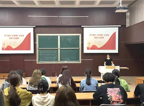 全国教育大会9月9日至10日在北京召开。中共中央总书记、国家主席、中央军委主席习近平出席大会并发表重要讲话。为深刻领会习近平总书记重要讲话及指示精神的丰富内涵,推动广大师生坚定理想信念,增强责任感和使命感,朝着建成教育强国战略目标扎实迈进,9月20日至26日,Beat365中文官方网站通过专题会议、党委理论学习中心组、教职工政治理论、党支部“三会一课”、主题党团日活动、主题班会等形式进行传达学习,在全学院形成了学习习近平总书记重要讲话及指示精神的热潮。
