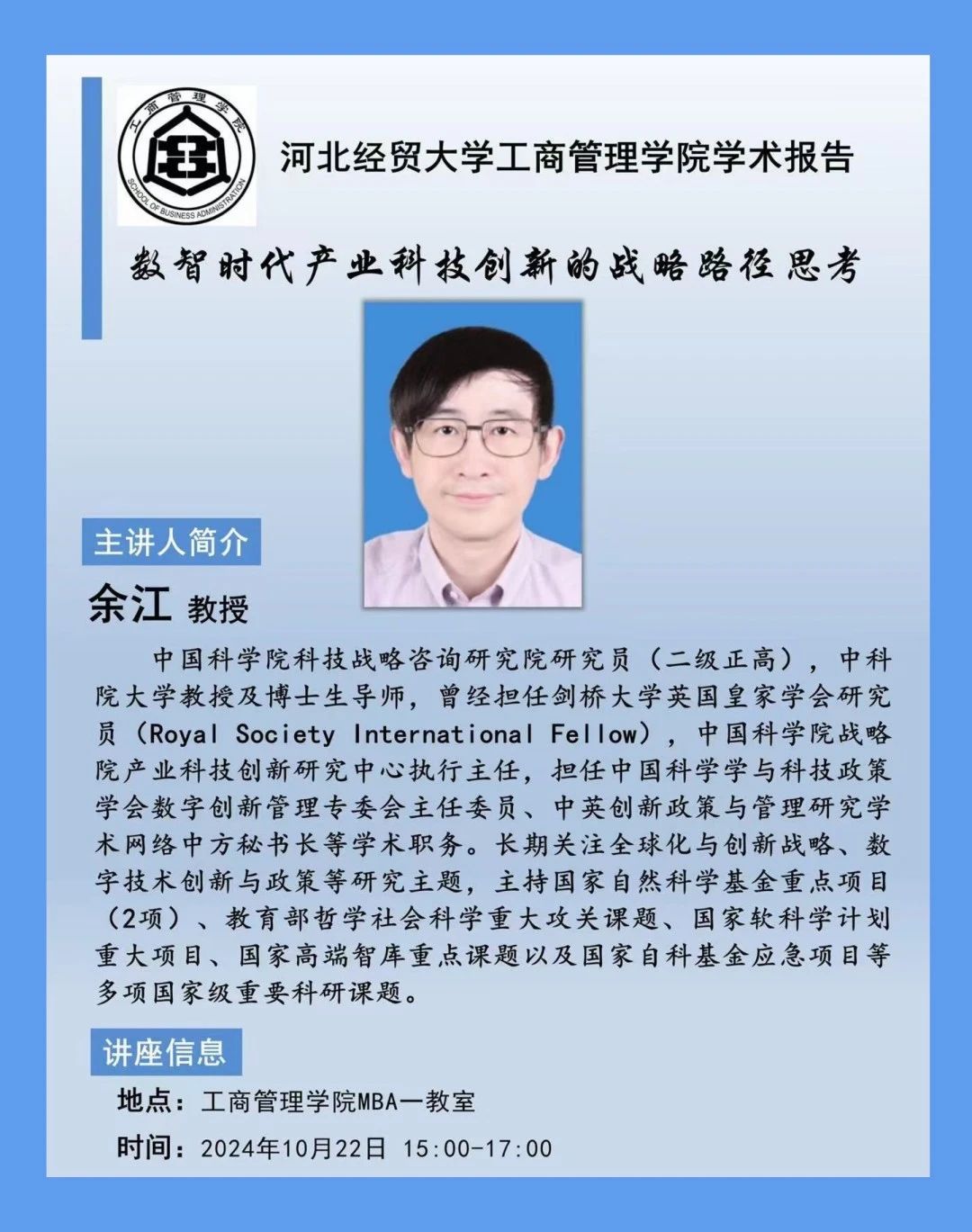 学术讲座预告‖数智时代产业科技创新的战略路径思考