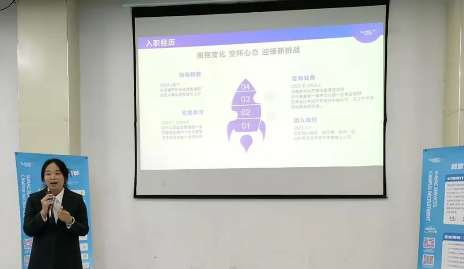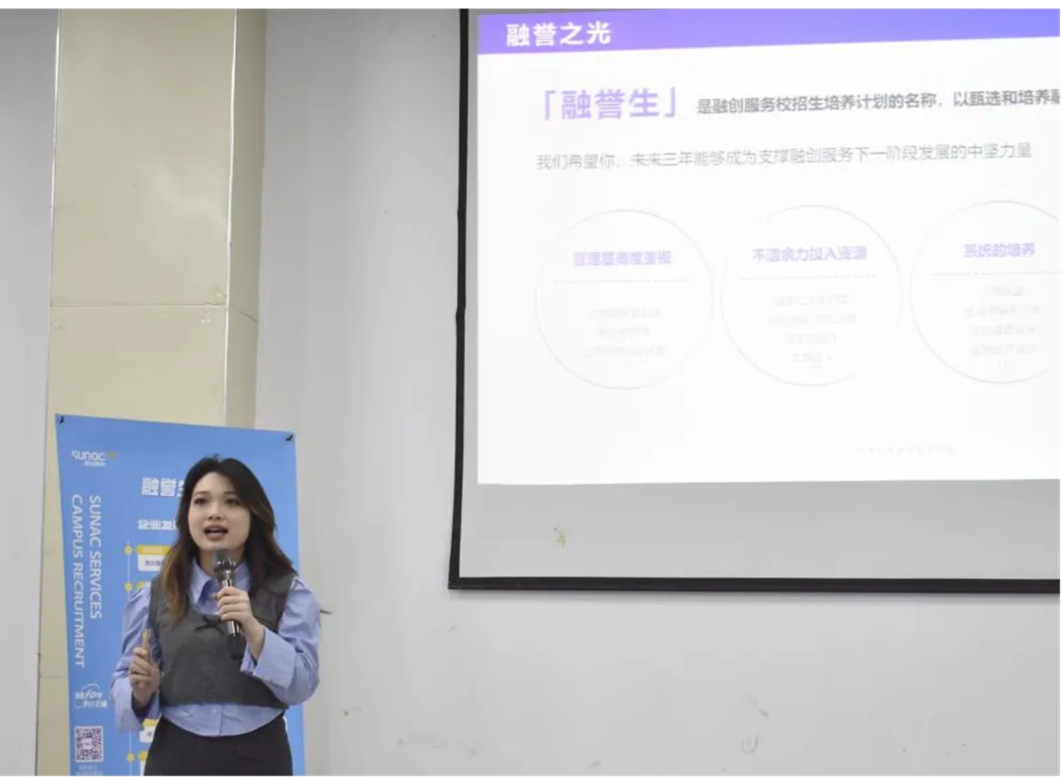 为进一步推进校企合作供需对接,为2025届毕业生提供优质的就业岗位,助力同学们实现高质量就业,10月22日下午,Beat365中文官方网站于学校就业报告厅举办融创服务2025融誉生校园招聘宣讲会,Beat365官网党委副书记宋欣、就业联络员赵靓丹出席,2025届部分毕业生参加。