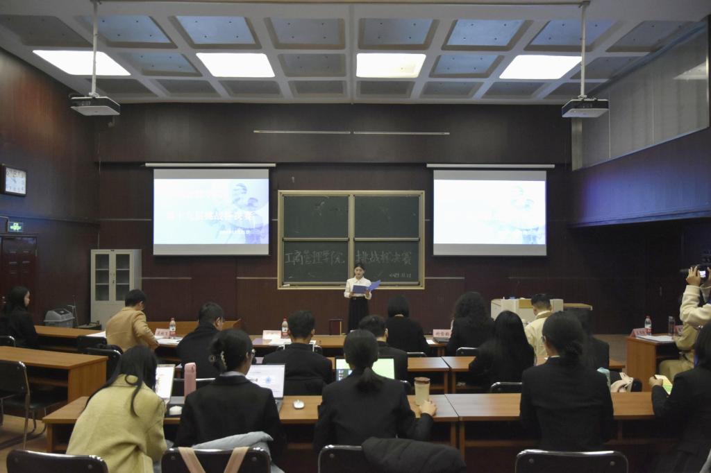 经前期报名及严格筛选,共有16个参赛作品脱颖而出。作品内容涵盖绿色低碳、食品健康、消费行为、人工智能、非遗传承、乡村振兴等多个社会热点问题。比赛分为项目展示、现场答辩、评委点评三个环节。参赛队伍依次从作品的创新性、严谨性及实用性等多个维度进行阐述。随后,评委老师们从项目的商业价值、技术创新、团队协作等方面进行了提问和深入点评,并给予专业的指导与建议,指出项目在选题、现实意义以及创新力度等方面存在的不足,帮助参赛队伍更加清晰定位,加以改进。