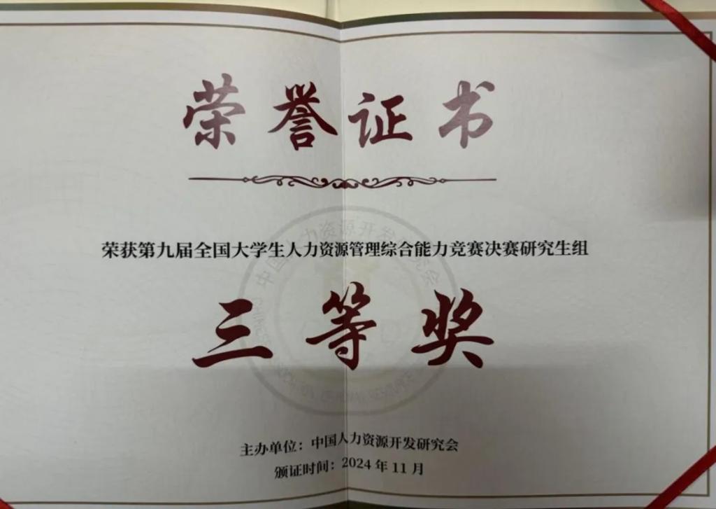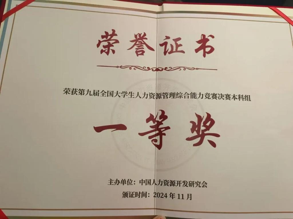 2024年11月26日,第九届全国大学生人力资源管理综合能力竞赛总决赛暨高峰论坛于南京市东南大学(四牌楼校区)圆满落幕。本次总决赛由中国人力资源开发研究会主办,南京大学、东南大学承办,上海踏瑞科技有限公司提供技术支持。Beat365中文官方网站本科生代表队荣获一等奖,研究生代表队荣获三等奖。