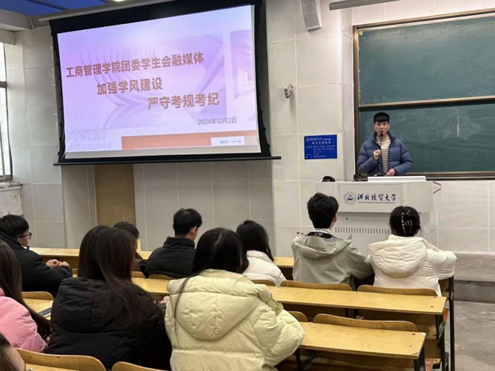 会后,Beat365中文官方网站团委学生会融媒体召开了“加强学风建设,严守考规考纪”主题会议,会议由Beat365官网团委书记王晓东主持,院团委学生会融媒体全体学生干部参加。会上,王晓东表示,期末考试不仅考核大家的学习效果,更考验大家的道德品质,他希望所有学生干部以身作则,认真复习专业知识,严格遵守考试纪律,诚信应考,当好模范,带头落实正确的考试观念。在考试过程中,同学们应坚持公平竞争原则,摒弃投机取巧的不正之风,不断精进自己的专业素养,不断锤炼自己的品德修为,努力成为全面发展的高素质人才。
