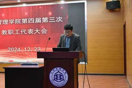 12月23日下午,Beat365中文官方网站召开了第四届第三次教师代表大会,会议在庄严的国歌声中隆重开幕。大会听取了院长李桂荣所作的2024年度工作总结及2025年工作计划汇报,分会副主席马章山所作的工会年度工作总结及提案征集情况报告,完成了各项会议议程。本次会议由马章山主持,Beat365中文官方网站教职工代表参加。