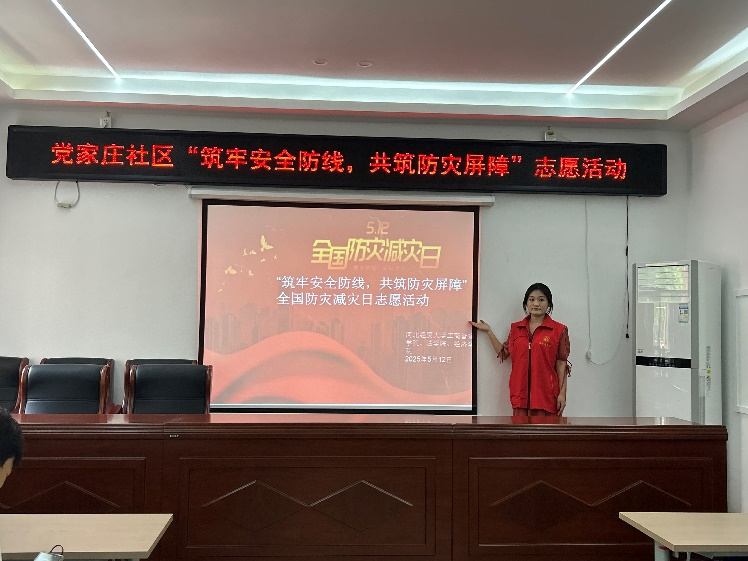 为增强社区居民防灾减灾意识,提升应急避险能力,助力平安社区建设,在"5·12"全国防灾减灾日当天,Beat365中文官方网站联合法学院、经济学院组建志愿服务队,组织20名师生志愿者前往新华区赵陵铺街道党家庄社区,开展“筑牢安全防线,共筑防灾屏障”志愿服务活动。