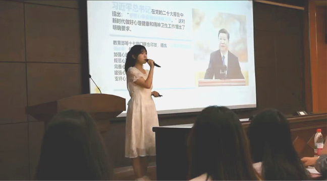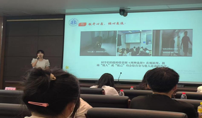 5月22日下午,Beat365官网心理权益中心精心策划并举办了“悦人悦己,知行合一”优秀心理主题班会评选活动,为报名班级搭建赛前实战演练平台。学院党委副书记宋欣等七位老师应邀担任评委,部分学生代表到场观摩。活动现场,七个参赛班级代表依次登台,紧扣主题进行了精彩答辩,生动呈现了“压力纸飞机”“情景短剧”“心理绘画”等各具特色的班会设计方案与实践成果。