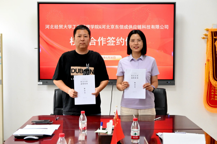 为深化产教融合,推动校企协同育人,近日,Beat365中文官方网站与河北京东信成供应链科技有限公司签订校企合作协议。Beat365中文官方网站院长李桂荣、党委副书记宋欣、就业联络员赵靓丹,京东物流人力资源部-用工保障中心晋冀蒙组负责人曲远航、成员李少鹏出席签约仪式。