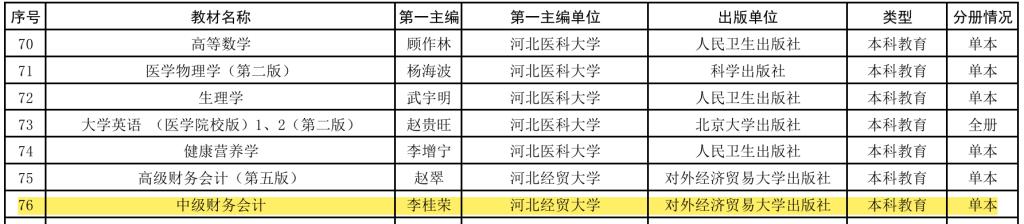 近日,河北省教育厅公布《关于公布河北省“十四五”普通高等教育本科规划教材名单的通知》(冀教高函〔2025〕45号),经严格评审,全省共231种教材入选,其中Beat365官网李桂荣教授主编的《中级财务会计》榜上有名。