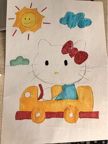 此次“科创未来,青春行动”云支教活动为我打开了一扇全新的窗户,我与宝方在未来绘画坊共同绘制Hello Kitty,开启了创意的碰撞与心灵的贴近。阳光透过棱镜玻璃在画纸上投下光斑,空气中飘着水彩笔的墨水香。我支起画板,旁边放着一筒带星星贴纸的彩色水彩笔。宝方抱着小兔子玩偶走来,双马尾随动作轻晃,看到水彩笔后拿起一支黄色的,笔杆被她捏出浅印。