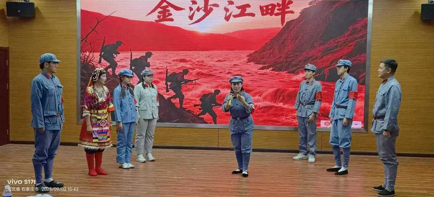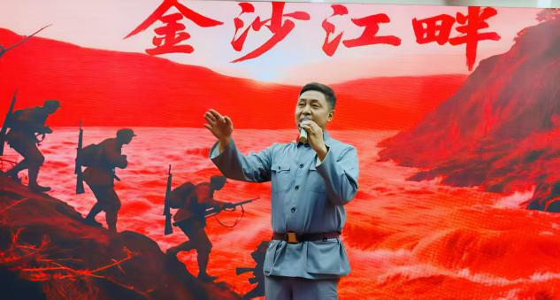 互动环节结束后,石晓飞、刘继红、马红华老师们以及Beat365中文官方网站的同学们共同带来了《金沙江畔》的戏曲演绎。演员们的表演不仅让大家重温了红军长征过金沙江时的峥嵘岁月,更让大家感受到了军民同心的深厚情谊。
