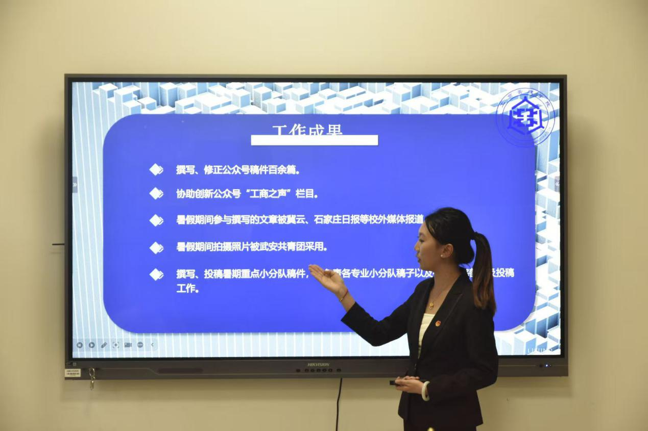 9月4日,第二十五届团学融工作总结大会召开,学院党委副书记宋欣、团委书记(学工办主任)王晓东、融媒体指导教师赵靓丹出席,第二十五届团委学生会融媒体中心全体成员参会,会议由团委事务组织中心负责人徐梓嘉主持。