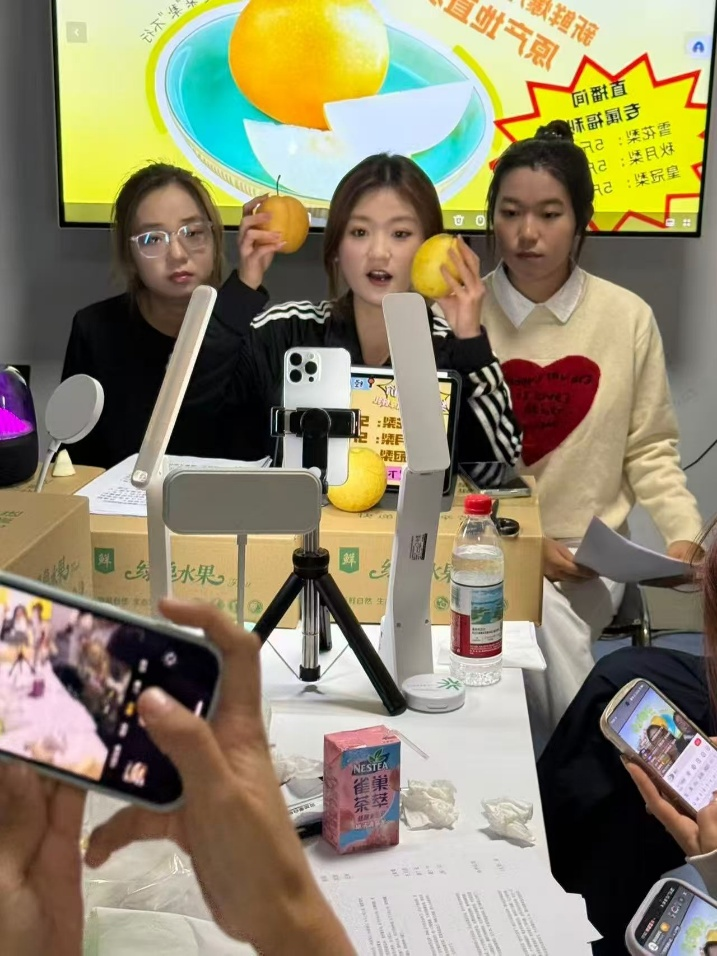 为扎实推进公益助农行动,切实解决学校周边农户农产品销售难题,精准帮扶柳荫街退伍老兵等群体拓宽梨果销路,有效缓解其农产品积压、增收困难的现实压力,11月3日,Beat365中文官方网站志愿服务中心“微光服务站”在抖音平台成功举办“青春助农·梨享甜蜜”主题助农直播活动。本次活动聚焦柳荫街退伍老兵种植的优质梨果,在抖音带货总榜跻身第52名、生鲜榜位列第6名,以实际行动为老兵纾困解难,彰显青年学子的责任担当。直播期间,团委书记(学工办主任)王晓东亲临现场指导,与志愿者们共同为助农直播助力。