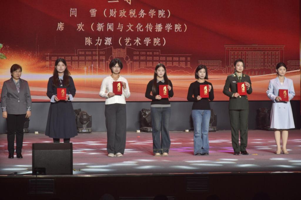 2023级市场营销2班王安琪(右1)上台领奖