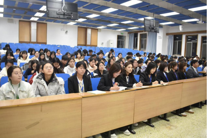 活动伊始,陈彦彤详细介绍了宣讲会的举办背景与核心流程,强调“挑战杯”竞赛作为展现青春智慧的重要平台,对提升学生实践能力、突破自我边界的重要意义,鼓励同学们认真聆听、积极汲取经验。