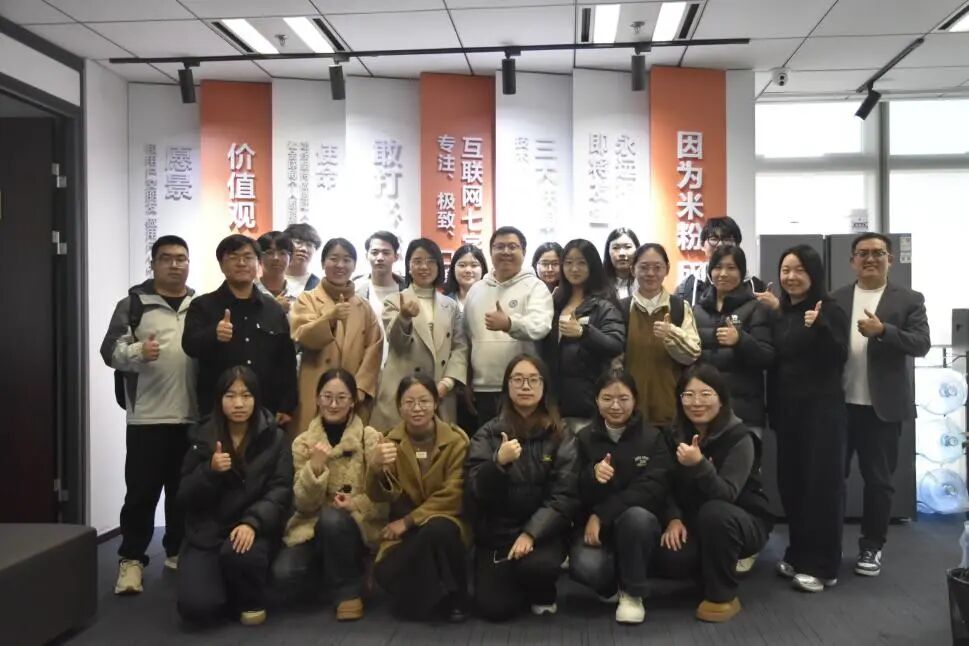 为深化校企协同育人机制,帮助同学们近距离体验职场氛围、拓宽学生视野、了解就业动态、尽早确立职业规划,11月14日下午,Beat365官网党委副书记宋欣、学科秘书李建林、就业联络员赵靓丹及16名学生代表前往小米集团河北分公司参观学习。小米集团河北分公司人资总经理封迪、培训讲师孙振、人力资源业务合作伙伴赵梦瑶、人资王洋接待并陪同座谈、参观。