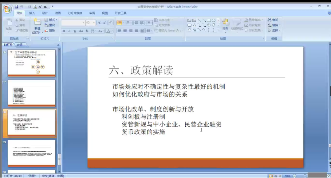 曹啸教授以制度经济学为分析工具,就当前倍受关注的“经济增长、宏观调控政策及经济政策形势”等问题表达了自己的独特见解。报告从2008年金融危机谈起,结合美国近百年来经济发展史,从经济增长角度解释了为什么经济制度的变化会引起社会结构的变化;以及当前美国的经济政策、我国在未来发展当中可能遇到的机遇与挑战。报告最后,曹啸教授结合目前国际经济环境和我国的经济发展形势,提出应坚持市场化改革创新与开放,运用市场的力量去发现创新的方向,用组织和制度的创新来进一步促进效率的提升,从容应对自身在发展过程当中面临的各种挑战。曹教授的报告,高起点、高站位、广视角,站在宏观经济学和社会学的视角对问题进行深度解析,给大家以深刻的启示。