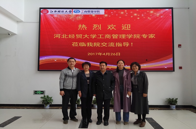 4月26日上午,学院谭志欣教授、李素喜教授和李永峰老师来到江西财经大学Beat365中文官方网站,就教授委员会治校、师资队伍建设等方面的问题进行了调研,并与江西财大Beat365中文官方网站胡宇辰院长、邹艳芬副院长、蒋岩波教授、万卫红教授进行了座谈。