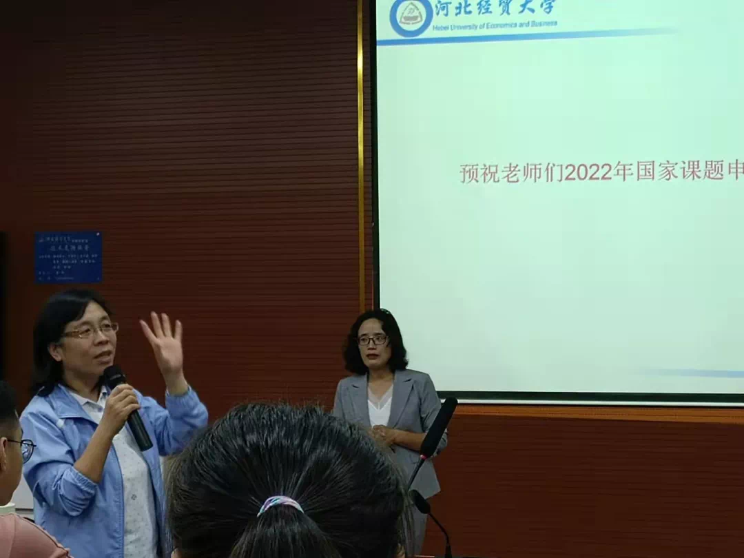 报告伊始,张静老师从亲身经历出发,介绍了课题申报决策、确定选题和申请书撰写的三个阶段;指出课题申报要具备“四大金刚”,即研究选题、论证过程、研究基础和精雕细琢;重点提到研究选题要有独创性,论证过程要有逻辑性,研究基础要有一贯性,在最后修改要注意细节,精益求精;并从申报内容出发介绍了课题依据、研究内容、创新之处、预期成果和研究基础等方面的写法和注意事项;最后,张静老师以个人感悟结束分享,指出要以自身的兴趣为驱动,深入钻研、跟踪前沿、把握重点、洞察细节、追求完美,并预祝老师们在2022年国家课题申报中立项成功。