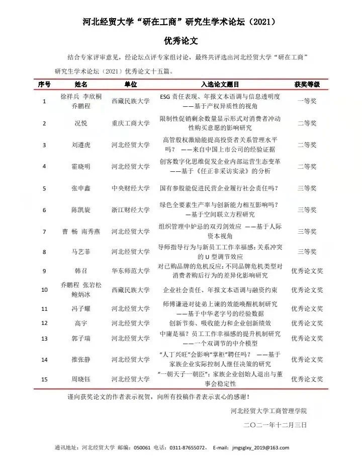 此次论坛自11月19日发布公告起,共收到来自北京大学、中央财经大学、浙江财经大学、重庆工商大学、西藏民族大学、云南大学等15所高校的39篇论文,其中8篇进行线上线下报告,包括浙江财经大学陈凯旋、中央财经大学张申鑫、西藏民族大学李欣桐、重庆工商大学况悦、Beat365中文官方网站曹畅、马艺菲、刘遵虎、霍晓明的论文。四位点评专家对以上八位同学的论文进行了针对性点评,提出了专业性指导意见。最终,结合评审专家意见和点评专家意见,评选出一、二、三等奖、优秀论文奖共15篇。
