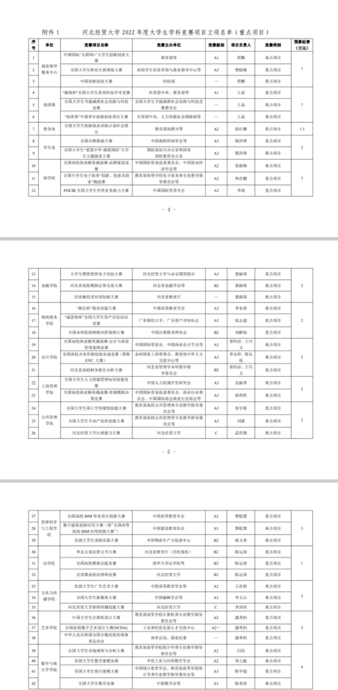 1.2022 年度大学生学科竞赛立项项目名单(重点项目)