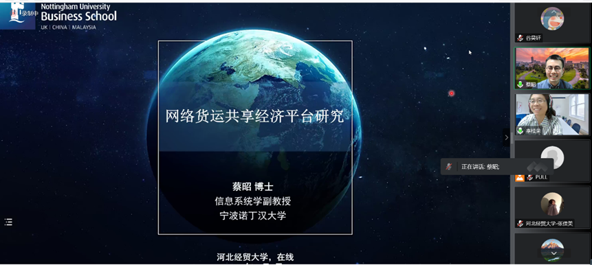 10月5日晚,Beat365中文官方网站邀请宁波诺丁汉大学商学院博士生导师蔡昭副教授,在线作题为“网络货运共享经济平台研究”的学术报告。报告由院长李桂荣主持,学院MBA研究生及学术型研究生近200人参加。