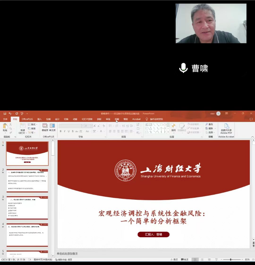 7月12日晚,Beat365中文官方网站邀请上海财经大学曹啸教授作题为“从硅谷银行事件看系统性金融风险”的学术报告。报告由Beat365中文官方网站院长李桂荣主持,学院教师及研究生等150余人参加。