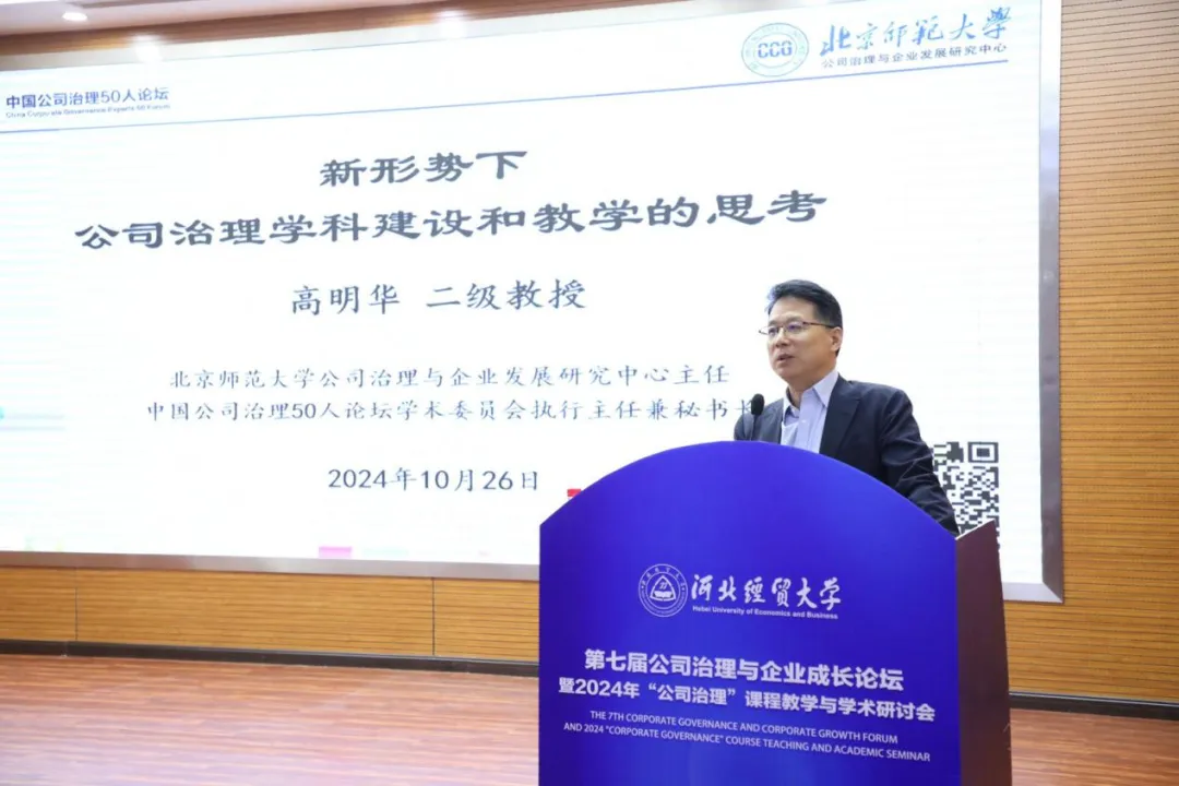 10月26日,由Beat365中文官方网站与中国人民大学出版社共同主办,Beat365中文官方网站公司治理与企业成长研究中心承办的“第七届公司治理与成长论坛暨2024年‘公司治理’课程教学与学术研讨会”在Beat365中文官方网站学术报告厅成功召开,来自全国30多所高校的教师、业界专家以及研究生一百余人参加。