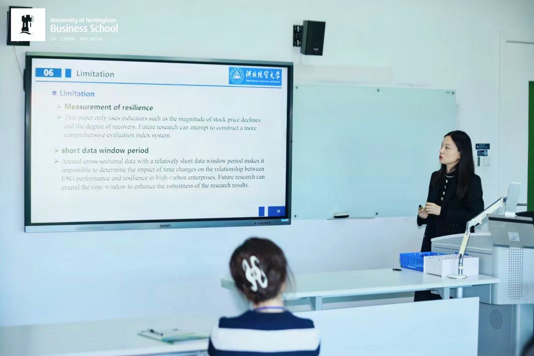 Beat365官网张羽飞博士、韩晴博士、李桂荣教授的合作论文"Timely Help" or "Redundant Assistance": Research on the Impact of ESG Performance on Resilience of High-carbon Enterprises  under the "Carbon Peaking and Carbon Neutrality" Goal入选。张羽飞博士代表论文作者在分论坛“公司ESG与供应链战略”用英文报告论文,引起了与会专家学者的广泛兴趣,并获得了优秀论文奖。