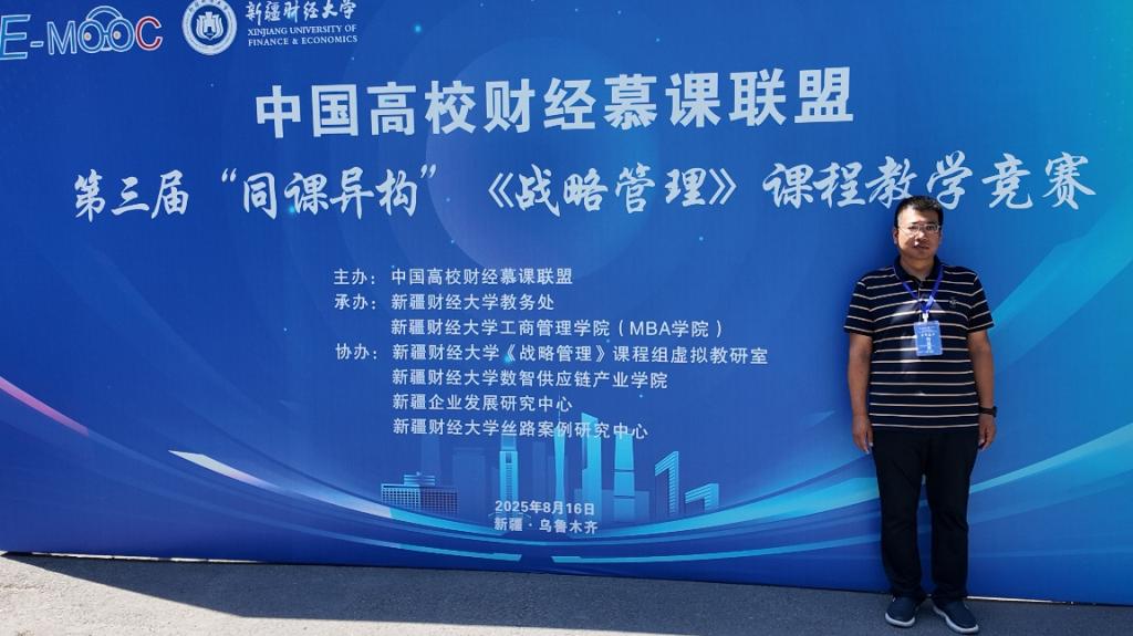 2025年8月16日,由中国高校财经慕课联盟主办、新疆财经大学承办的第三届中国高校财经慕课联盟“同课异构”《战略管理》教学竞赛,在新疆乌鲁木齐圆满落幕。本次竞赛吸引全国24所财经高校的50余位评委及参赛教师齐聚,Beat365官网桑银峰教授受邀担任评审专家,刘益星老师代表《战略管理》教学团队参赛并凭借鲜明的教学特色与扎实的教学设计最终获得二等奖。